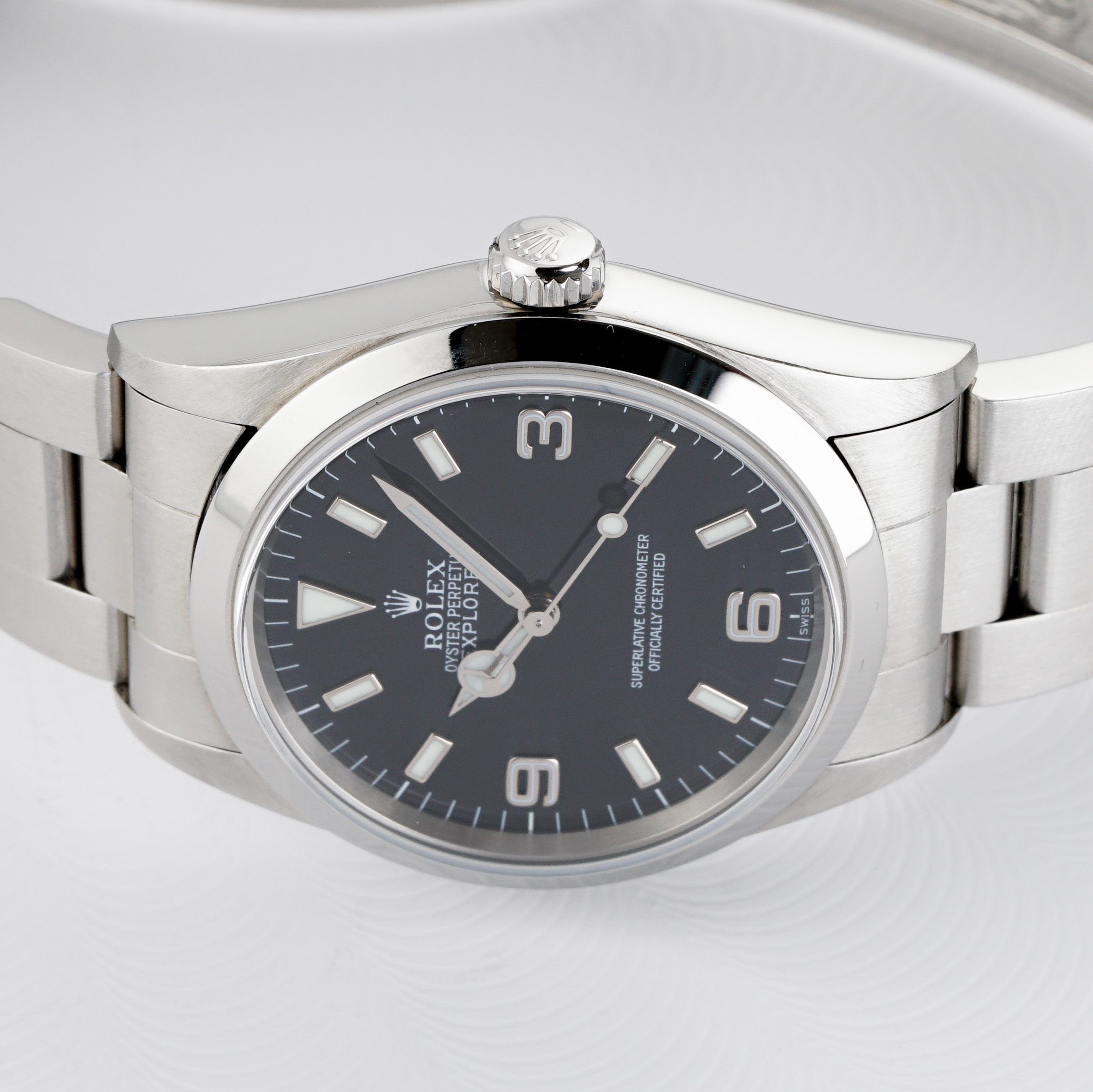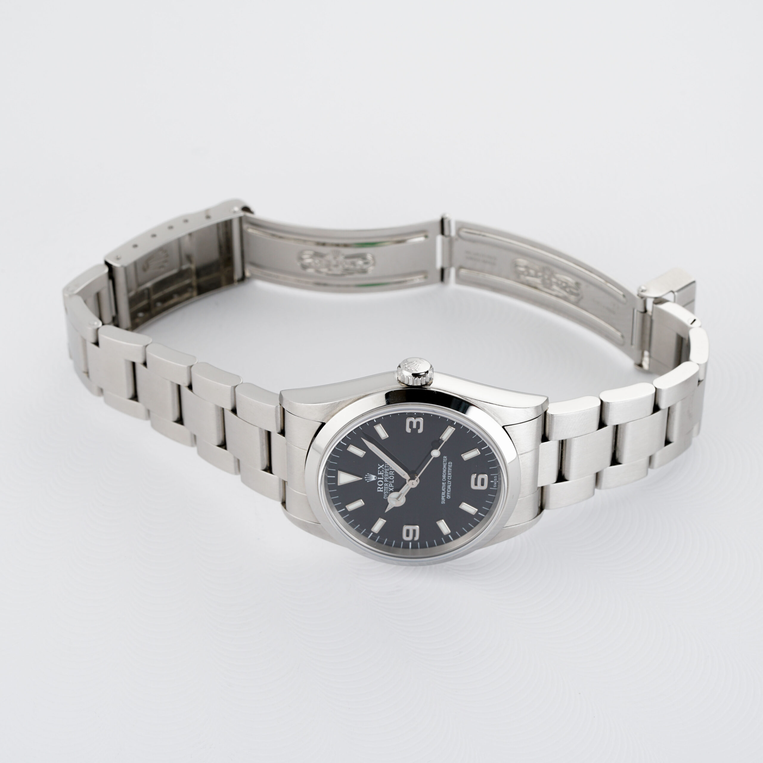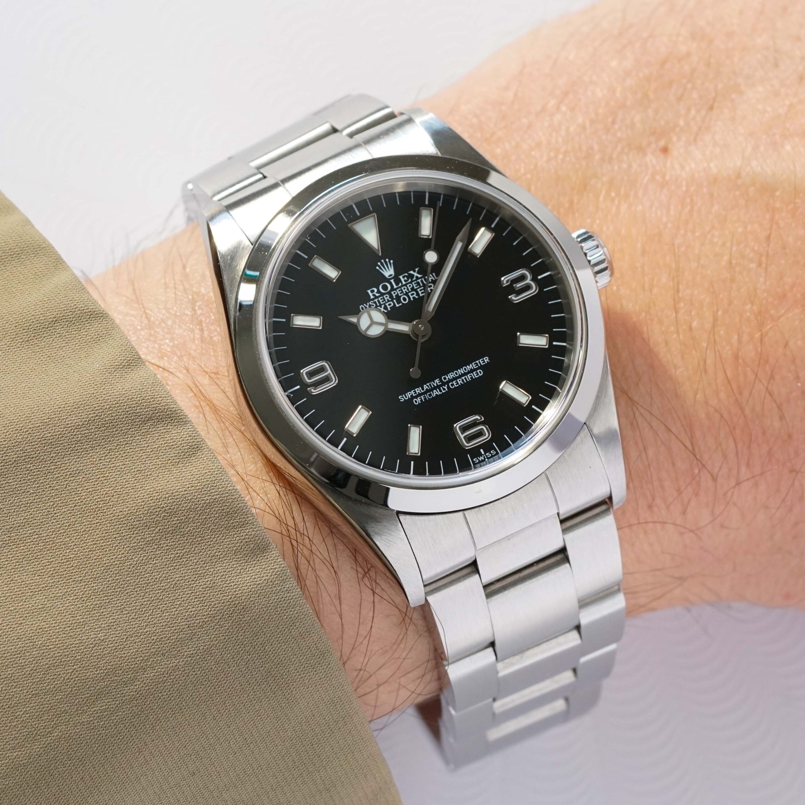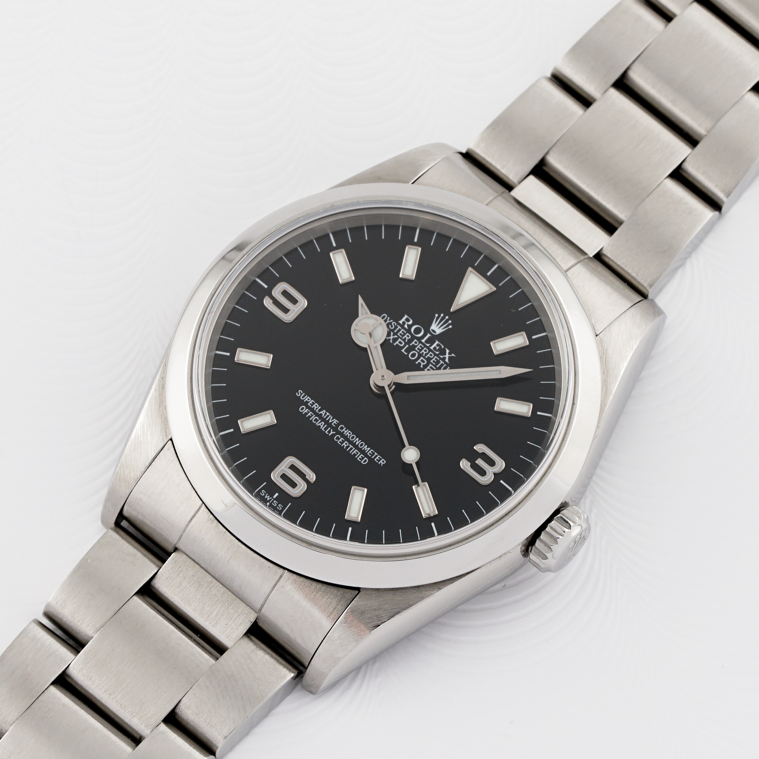This short-lived third series marked Rolex’s transition to Luminova lume, replacing Tritium while retaining the clean, no-date Explorer design that’s made the model an icon. This example remains in excellent condition, still sporting its original green caseback sticker a rare survivor detail.